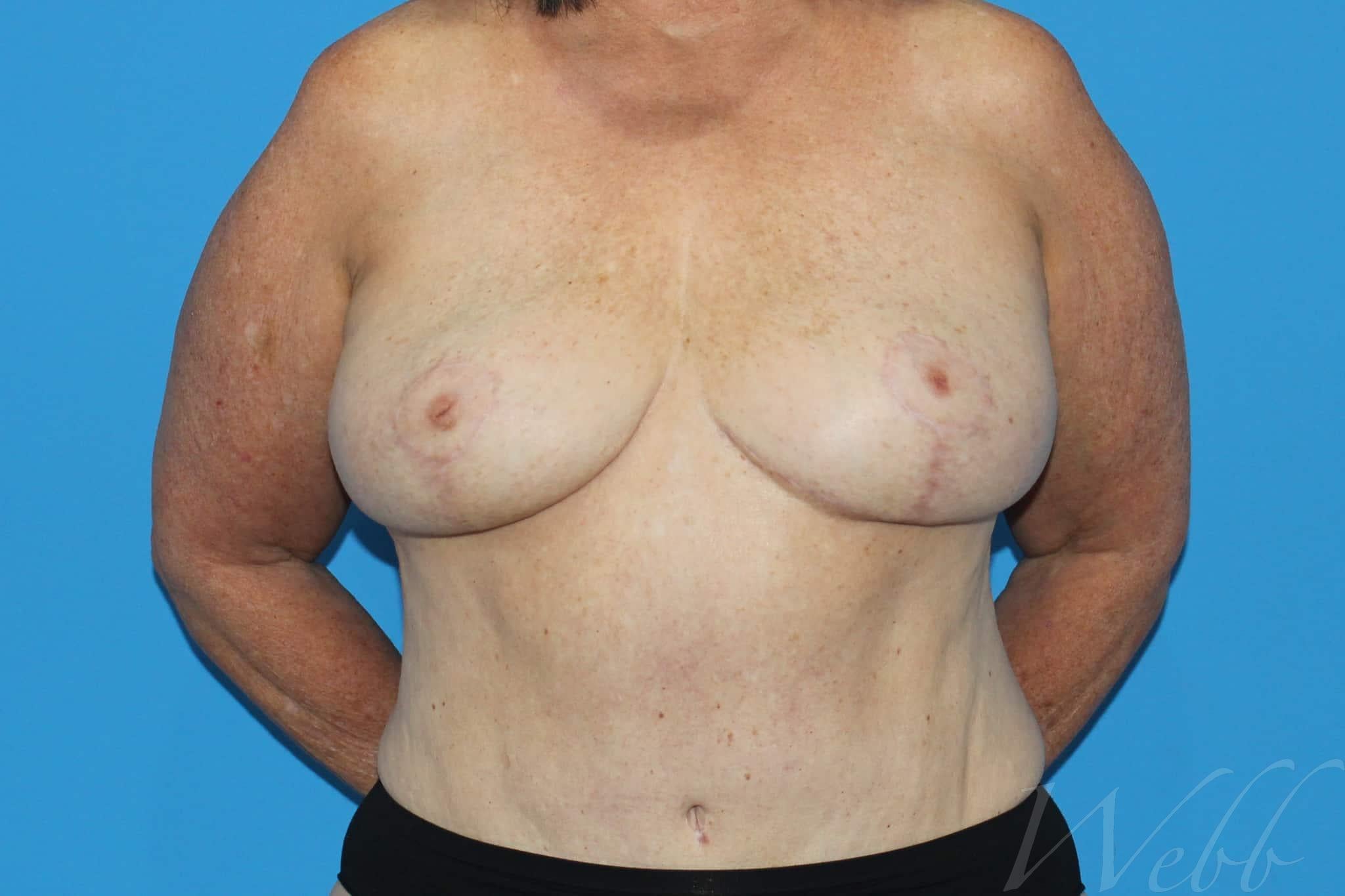 She wanted her 17 year old implants removed and to have better symmetry. She is shown after implant removal (explantation) and a mastopexy (breast lift). She is happy to be more comfortable and symmetrical.