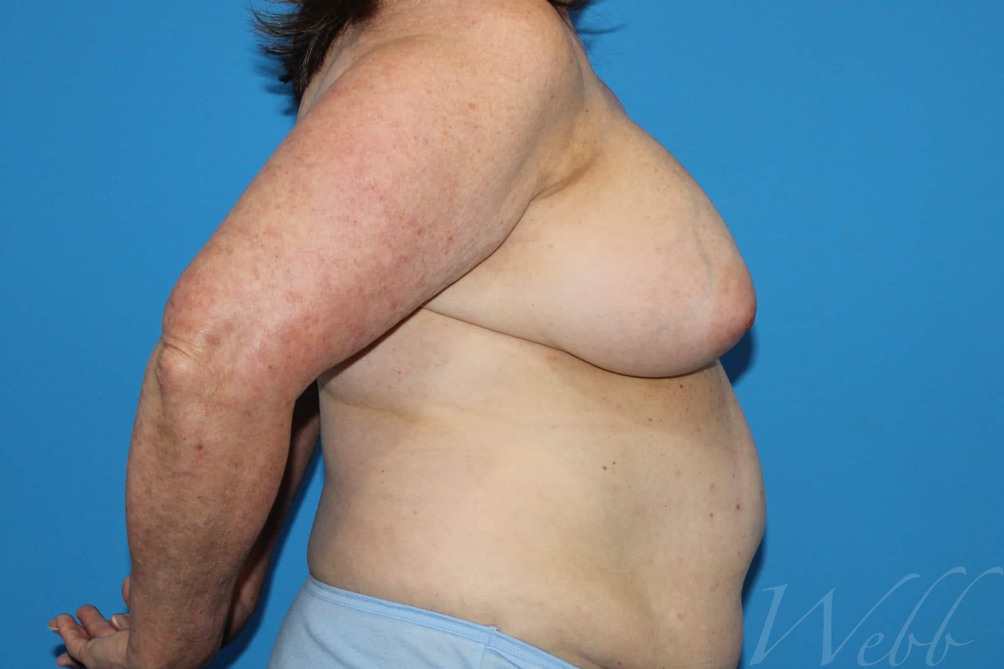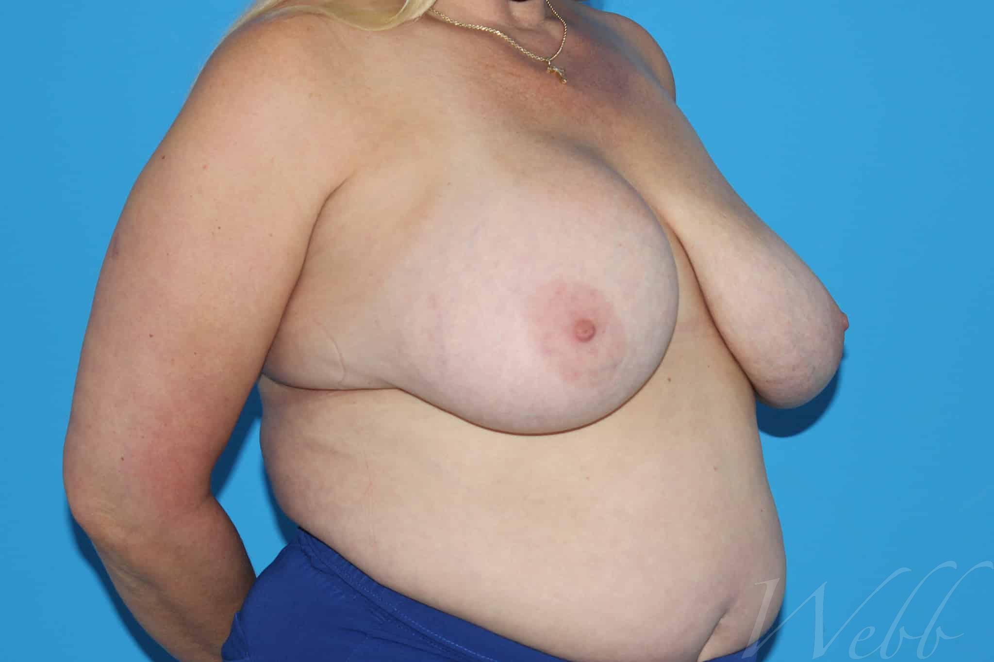 She wished to have her saline implants removed and to have an improvement in breast shape and symmetry. She is shown after breast implant removal (explantation) and mastopexy (breast lift).