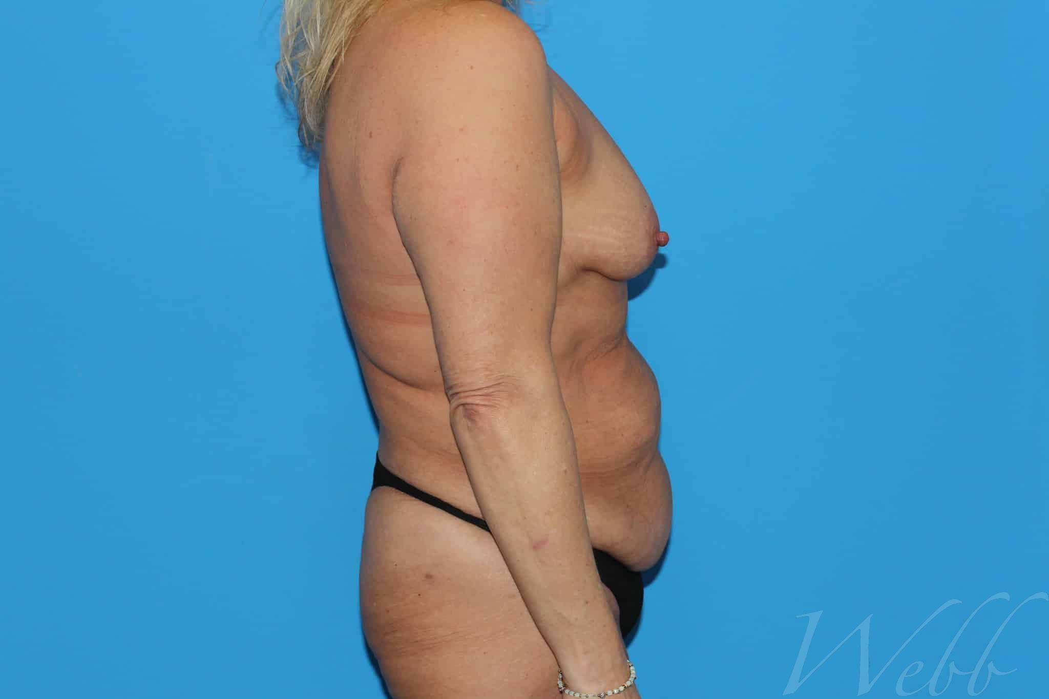 This mother of 3 came to regain her pre-pregnancy shape. She is shown after a tummy tuck with muscle plication and liposuction of 2 liters of fat from her waist along with a mastopexy (breast lift).